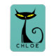 Ce design d'aimant personnalisé présente un chat noir "atomique" moderne rétro du milieu du siècle avec de grands yeux jaunes et une queue bouclée. Vous pouvez facilement modifier l'orthographe du texte, le style de police, la couleur et la taille avec le bouton Personnaliser Zazzle.