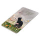 Un chat noir calme est assis dans une parcelle de jolies fleurs et regarde un papillon coloré se faufiler dans l'air. Les mots "Parfois, ce sont les petites choses qui apportent de la joie à votre journée" peuvent être enlevés ou changés si vous le souhaitez.
