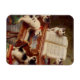 Magnet représentant la peinture à l’huile de Carl Reichert Le considérant des chatons (1836-1918). Cinq adorables chatons noirs et blancs sont assis au sommet d'un piano. Un cadeau fantastique pour les amoureux de les chats et les amateurs d'art victorien.