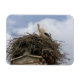 Vue en angle bas de la cigogne blanche (Ciconia ciconia) perché sur le nid contre le ciel