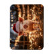 Aimant flexible avec un adorable cochon portant un chapeau de Père Noël et entouré de lumières scintillantes.