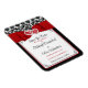 Si vous avez trouvé l'amour de votre vie et que vous souhaitez inviter tous vos proches à assister à l'union de vos deux vies et de vos cœurs, alors ce joli faire-part de mariage aimanté noir et blanc à motif damassé avec des cœurs entrelacés sur un ruban rouge et une image de nœud traversant le haut est un excellent moyen d'annoncer vos prochaines noces. Il présente un motif de fond damassé noir et blanc au-dessus du ruban avec les détails du mariage imprimés en dessous du ruban sur fond blanc en lettrage noir et rouge avec quatre fioritures noires dans les coins qui correspondent au faire-part de mariage. Si vous avez besoin d'aide ou si vous souhaitez un faire-part de mariage aimanté plus grand, veuillez envoyer votre demande à niteowlstudio@gmail.com ou utilisez le chat Zazzle pour nous contacter.