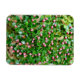 Gros plan du motif en os de cornes de Cotonou horizontalis, présentant des fleurs roses et blanches molles contre des feuilles verts vibrants