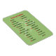 Un aimant amusant avec un alphabet pour les coureurs. 26 lettres de l'alphabet avec un mot courant ou une phrase pour chacun. En lettres noires et rouges sur un arrière - plan vert tendre qui a aussi la silhouette d'un coureur.