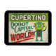 Un aimant frigo Cupertino California vintage plein de charme avec un robot amusant et amical, avec un texte amusant de style rétro qui dit : "Voir à Cupertino"