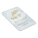 Annoncez votre prochain jour de mariage pour la famille et les invités avec un dauphin d'or Enregistrer l'aimant de la date. Le design de l'aimant présente un dauphin métallique contre un arrière - plan de vagues océaniques muettes orné d'élégants rouleaux. Personnalisez avec les noms du marié et de la mariée avec la date du mariage. Papeterie mariage supplémentaire et cadeaux disponibles avec ce design aussi.