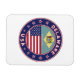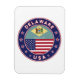 Badge du Delaware avec drapeau du Delaware et drapeau des Etats-Unis couleurs, forme arrondie. Emblème du Delaware. Delaware City, Dover, Harrington, Lewes, Middletown, Milford, New Castle, Newark, Rehoboth Beach, Seaford, Wilmington, Smyrne, Georgetown, Elsmere, Millsboro