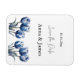 Assurez-vous que vos invités marquent leurs calendriers avec cette élégante Delft Blue Tulip personnalisable Enregistrer la date Mariage Magnet. Le design se compose d'un ensemble de tulipes à aquarelle bleu et blanc classiques, donnant à l'aimant un look raffiné et d'inspiration européenne, parfait pour n'importe quel réfrigérateur. Personnalisez-le avec les noms du couple Anna & James, la date mariage 10.16.20XX, ou la simple demande Enregistrer la date.