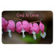Cet aimant présente des fleurs de coeur qui saignent rose avec le message réconfortant que Dieu est amour.
