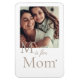 Aimant arrière - plan blanc avec une audacieuse lettre de serif taupe superposée près d'une photo centrée. Ci-dessous, une phrase de script dit "est pour", suivi du mot serif "Maman" et un petit coeur. Une disposition douce combinant l'imagerie avec une typographie significative.