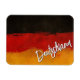Aimant à thème allemand, avec des lignes peintes en noir, rouge et jaune dans un style abstrait drapeau allemand. Deutschland en texte script, en bas de l'avant peut être personnalisé pour lire ce que vous voulez.