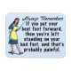 La citation originale, drôle de démotivation / fausse inspiration sur cet aimant flexible dit : "N'oubliez pas toujours : si vous mettez votre meilleur pied en avant, alors vous restez debout sur votre mauvais pied, et c'est probablement douloureux." Il a une image rétrograde des années 40 ou 50 d'une femme tenant le pointeur d'un professeur et portant un tablier, tenant un pied tandis qu'elle se tient sur l'autre. L'arrière - plan est bleu clair. C'est un dicton humoristique pour quiconque aime le sarcasme et serait aussi bon pour un podiatre.