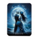 Cette annonce magnétique de mariage gothique romantique pour économiser la date de mariage comporte un couple de squelettes bleus habillés en tenue de mariage debout devant la lune et la plage de l'océan avec vos noms et date de mariage à personnaliser. Image générée avec l'IA.