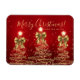 Elegant Merry Christmas / Happy Holidays "Magnet" Gold Trees with bows on red with a custom text.
