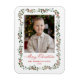 Célébrez la saison avec cet élégant aimant photo de vacances qui présente votre photo de famille verticale entourée de baies et de verdure. Le design met en valeur "Joyeux Noël" en calligraphie rouge fluide, jumelé à votre nom de famille et l'année suivante en lettres serif traditionnelles. Un souvenir intemporel, cet aimant photo de Noël est une belle façon de partager des voeux chaleureux de vacances avec des proches.