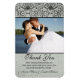 Cet élégant mariage vintage merci photo 4x6 aimant flexible a une bordure noire damasée en haut avec un arrière - plan gris argent passé. Au centre, vous pouvez facilement ajouter votre photo. Ci-dessous, le Merci est écrit ci-dessus où vous pouvez customiser les noms de la mariée et du marié. Ce mariage merci pour l'aimant serait parfait pour toutes les saisons, surtout pour l'automne / l'automne et l'hiver.