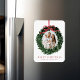 Share holiday cheer with this festive Christmas photo magnet featuring your photo framed by a watercolor greenery wreath hung from a painted red bow and ribbon. “Merry Christmas” appears in classic red serif lettering with your family name displayed below for a warm, personalized touch. Perfect for gifting, displaying on the fridge, or including with holiday cards, this magnet offers a timeless way to celebrate the season and showcase your favorite family photo.