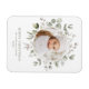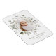 Élégant aimant de vacances avec votre photo encerclée de baies de neige aquarelle, d'eucalyptus feuilles, et feuillage vert sauge luxuriant. Personnalisez l'aimant photo botanique de Noël avec un accueil personnalisé, votre nom de famille et l'année en lettres vert sauge.