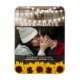 L'amour est dans l'air ! Mettez en valeur le mariage champêtre imminent du couple heureux avec ce magnifique aimant "save the date". Avec une photo de vous et votre partenaire, un fond de tonneau en chêne de grange de campagne romantique et des guirlandes lumineuses, cet aimant save the date est parfait pour tous les mariages sur le thème rustique. Les tournesols jaunes naturels ajoutent une touche de couleur et d'élégance tandis que vos noms, le lieu de votre cérémonie et la date de votre mariage sont présentés dans une police classique pour assurer un look et une sensation intemporels. Votre monogramme est un excellent ajout qui ne manquera pas de ravir vos invités.