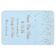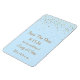 Cet aimant flexible Save the Date est affiché dans une couleur bleu clair avec de petites étoiles dorées. Customisez ce point et modifiez le texte à votre place avec ce modèle.