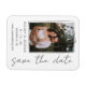 Capturez l'essence de l'élégance intemporelle avec notre aimant Save the Date magnifiquement conçu, parfait pour les couples modernes qui planifient leur mariage de rêve. Ce modèle personnalisable présente un design chic noir et blanc, avec un arc dessiné à la main encadrant votre photo préférée, assurant que votre faire-part spéciale se démarque. Le script élégant "Save the Date" sur le côté ajoute une touche de sophistication, tandis que la disposition simple et propre garde l'accent sur votre histoire d'amour. Personnalisez avec vos noms, date mariage, emplacement et site Web pour une invitation transparente et mémorable. Idéal pour les mariés et les mariés qui apprécient l'élégance sobre et le design contemporain.