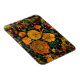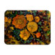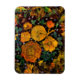 Cette image vibrante est une combinaison d'un tableau et d'un art numérique. Elle présente des fleurs jaunes dorés et oranges brillantes, avec des textures complexes, en forme de web. Les fleurs ressemblent à des roses et d'autres fleurs, entourées d'un enchevêtrement de tiges néons et de feuilles dans les tons vert, orange et rouge. L'arrière - plan est sombre, presque noir, ce qui renforce l'effet lumineux des fleurs et du feuillage. De minuscules lumières scintillantes parsèment l'atmosphère magique ou cosmique.