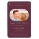 Mystical Plum Gold Sun Moon Stars Space Save The Dates Magnet dispose d'un cadre d'or soleil, lune et étoiles sur un arrière - plan de prune. A l'intérieur est votre photo préférée et votre personnalisation enregistrer les informations de date. Personnalisez en modifiant le texte dans les zones de texte. Conçu pour vous par ©2022 Evco Studio www.zazzle.com/store/evcostudio