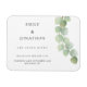 Le style contemporain est pratique pour vos invités de garder à l'esprit que vous avez un Micro mariage plus petit, et de les invitations pour sauver votre nouvelle date, avec une branche d'élégants feuilles d'eucalyptus verts qui descendent le côté droit et la typographie à gauche.