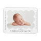 Aimant faire-part de naissance moderne avec la photo de votre bébé niché à l'intérieur d'un cadre à coquilles blanches. Personnalisez l'aimant du faire-part de naissance blanc en ajoutant le nom de votre bébé et des informations supplémentaires en lettres noires.