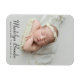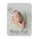 Partagez l'arrivée de votre bébé fille avec ce faire-part de naissance magnétique élégant. Votre portrait préféré de nouveau-né est mis en valeur avec le nom du bébé dans une belle écriture et les détails de naissance en charbon de bois ci-dessous. Un design épuré et intemporel que la famille et les amis peuvent conserver comme souvenir pendant des années. La couleur du texte est entièrement personnalisable pour compléter votre photo.