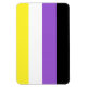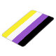 Le drapeau non-binaire a été créé en 2014 par l'activiste Kye Rowan. Chaque couleur de bande représente différents types d'identités non-binaires : Jaune pour les personnes qui s'identifient en dehors du binaire de genre, blanc pour les personnes non-binaires avec plusieurs sexes, violet pour celles avec un mélange de sexe masculin et féminin, et noir pour les individus de genre.