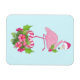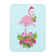 Aimant avec un flamant de Noël à thème tropical portant un chapeau de santa rose. Sous ses pieds se trouve un bouquet de sucre de canne avec de jolies fleurs tropicales et des baies roses. Un bourgeon de saint sur sa poitrine.