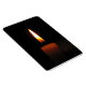 Allumez votre vie avec cet élégant aimant flexible. Il présente une simple photographie à vie morte d'une bougie marron avec une belle flamme dans les tons blanc, jaune, or et orange. Il est installé sur un arrière - plan noir pur.