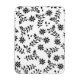 Un design classique avec une fleur, bourgeon et feuille. Un design délicat, féminin et élégant. En noir et blanc classique.