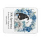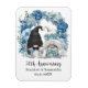 Personnalisé 50e anniversaire mariage garde l'aimant de saké avec un design avec un gnomes de mariée et de mariée et une illustration d'arc floral bleu. Modifiez le modèle avec n'importe quelle année et message.