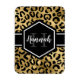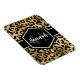 Chic gold and black leopard print flexible magnet with a custom name and monogram template. A cute and trendy safari animal print pattern background topped with your own bit of personalization.
