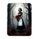 +AI ART+ Robot gothique fille avec des fleurs rouges et son chaton branché debout dans une forêt. Es-tu son véritable amour ? Elle t'attend.