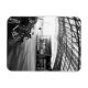 The black and white urban image of Halle Train Station in Flemish Brabant, Belgium captures the timeless beauty of the modern architecture, with light and shadow creating a dramatic interplay. The parked bicycle and the wheels of vehicles add a sense of movement to the stillness of the scene, while the monochrome palette enhances the moody atmosphere and urban charm. Modern Street photography and a great souvenir magnet.