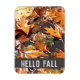 Photographie de feuilles tombés en automne dans une flaque avec la superposition personnalisable "Hello Fall"