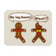 "Ma jambe me fait mal" - "Quoi ?" Drôle hommes en pain d'épice dans la parodie, parodie, aux lapins lapins qui dit "Mon cul fait mal". Cute Christmas Gingerbread homme design graphique. Avec un arrière - plan vert clair qui peut être changé en n'importe quelle couleur.