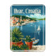 Une description captivante et nostalgique de Hvar, Croatie, connue pour son magnifique littoral adriatique, sa vie nocturne animée et son charme historique. Le design capte les eaux turquoise cristallines de l'île, le port pittoresque et les anciens bâtiments en pierre nichés le long du littoral. Rendu dans un style vintage, l'oeuvre évoque la beauté sereine et l'atmosphère animée de Hvar, invitant les spectateurs à explorer ses paysages enchanteurs et son riche patrimoine culturel.