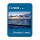 L'aimant express le sentiment de beaucoup de ceux qui vivent (et doivent donc travailler) pour croiser. Il comprend une photo du sillage d'un navire au début d'une journée en mer, et les mots "I cruise. . . par conséquent, je travaille. :"