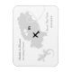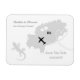 Mariage de destination élégant enregistrer la carte magnétique de date pour les couples se mariant à Ibiza. Avec le symbole de lézard gecko, une carte en silhouette gris argenté et des coeurs d'amour blancs. Très joli et facile à customiser avec vos détails personnels.