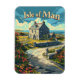 Une représentation nostalgique et pittoresque de l'île de Man, située en mer d'Irlande entre la Grande-Bretagne et l'Irlande. Le design souligne le littoral accidenté de l'île, les collines verdoyantes et les sites historiques tels que le château de Peel et la roue Laxey. Rendu dans un style vintage, l'oeuvre capture l'allure intemporelle et la beauté naturelle de l'île de Man, invitant les spectateurs à explorer son riche patrimoine et ses paysages pittoresques.