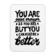 Impression en lino noir et blanc d'une citation motivationnelle qui dit "Vous êtes assez bon, mais vous pouvez toujours être meilleur". Offre un encouragement pour que les gens sachent que l'acceptation de soi et la croissance vont de pair.