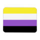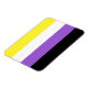 Les personnes non binaires peuvent s'identifier comme ayant deux ou plusieurs sexes, n'ayant pas de sexe, se déplaçant entre les sexes ou ayant une identité de genre fluctuante, ou être du troisième sexe ou d'autres sexes, une catégorie qui comprend ceux qui ne placent pas de nom à leur genre. Chaque couleur de bande représente différents types d'identités non-binaires : Jaune pour les personnes qui s'identifient en dehors du binaire de genre, blanc pour les personnes non-binaires avec plusieurs sexes, violet pour celles avec un mélange de sexe masculin et féminin, et noir pour les individus de genre.