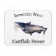 Que vous soyez en train de nouer ou de pêcher avec un hameçon et un peseur, peu de choses se comparent à attraper un poisson-chat puissant et délicieux. Yum. Image détaillée en couleur complète d'un poisson-chat avec le texte Infecté par la fièvre de poisson-chat.