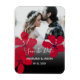 Simple, élégant, invitation magnétique moderne de calligraphie pour sauver la date de mariage noir et blanc avec photo et fleurs aquarelles rouges.