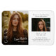 Cet élégant aimant design moderne d'invitation de graduation photo dispose d'une photo verticale et titre avec nom de script personnalisable et texte sur la gauche. Le côté droit a une invitation avec les détails de la fête et photo horizontale. Une excellente façon de présenter votre diplômé. Cliquez sur le bouton Modifier pour personnaliser cette conception.