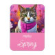 Un aimant de printemps vibrant avec des oeuvres d'art fantaisistes. Ce charmant tabby porte un foulard magenta, posant à l'extérieur dans un pré avec des fleurs sauvages dans l'arrière - plan.Embracant une ambiance jazzy avec une joyeuse note "Hello Spring". Alma Wad a utilisé Canva AI pour créer ce chef-d'oeuvre. Idéal pour tous ceux qui aiment les fleurs sauvages, les chats mignons et les vibes de printemps.